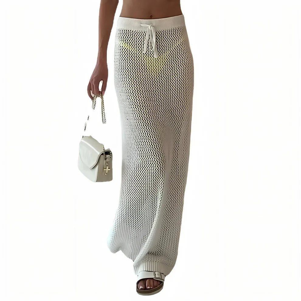 Verleihe deinem Sommerlook Stil und Leichtigkeit mit diesem weißen Midi-Häkelrock im entspannten Boho-Design. Der Rock fällt locker um die Hüften und hat eine komfortable Taille mit elastischem Bund – ideal zum drüberziehen über Bikini oder Badeanzug. Das luftige Häkelmuster sorgt für maximale Atmungsaktivität, während der seitliche Schlitz deine Beine auf elegante Weise betont.