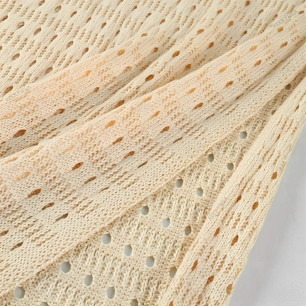 Dieses atmungsaktive Maxi-Kleid überzeugt durch sein luftig gestricktes Häkelmuster und einen frechen rückenfreien Schnitt, der besonders sommerliche Freiheit vermittelt. Der fließende Stoff (100 % Polyester) sorgt für hohen Tragekomfort bei warmen Temperaturen – ideal für Strandtage oder Urlaubsabende. Das leuchtende Gelb setzt das Design stilvoll in Szene.