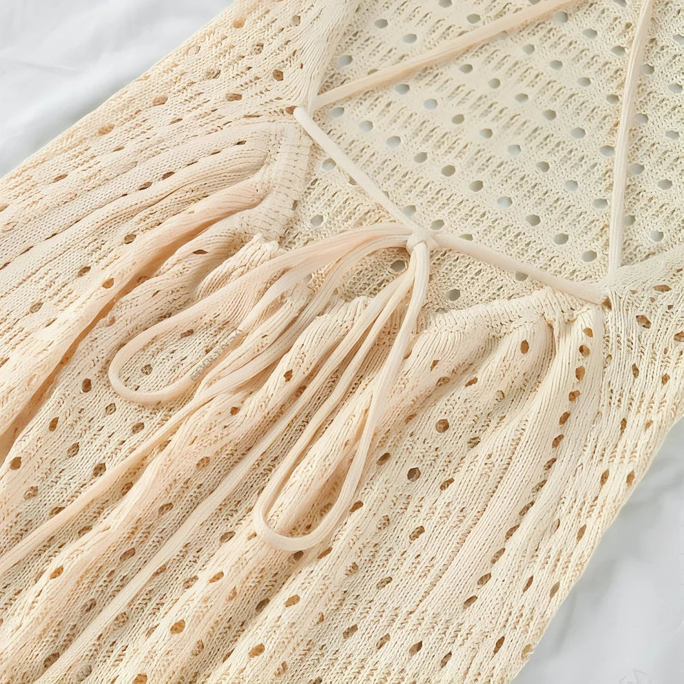 Gelbes Häkel-Maxikleid Rückenfrei – Boho Sommerkleid