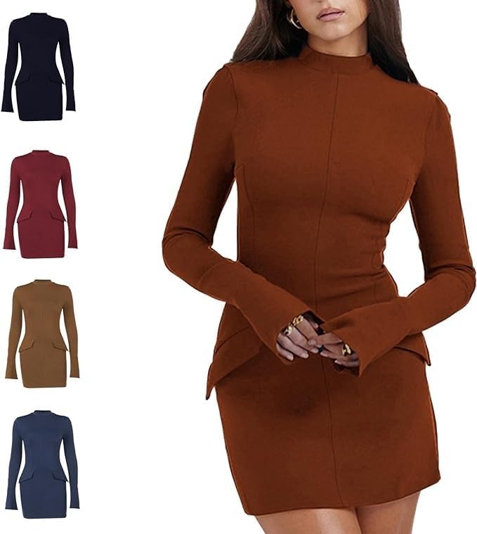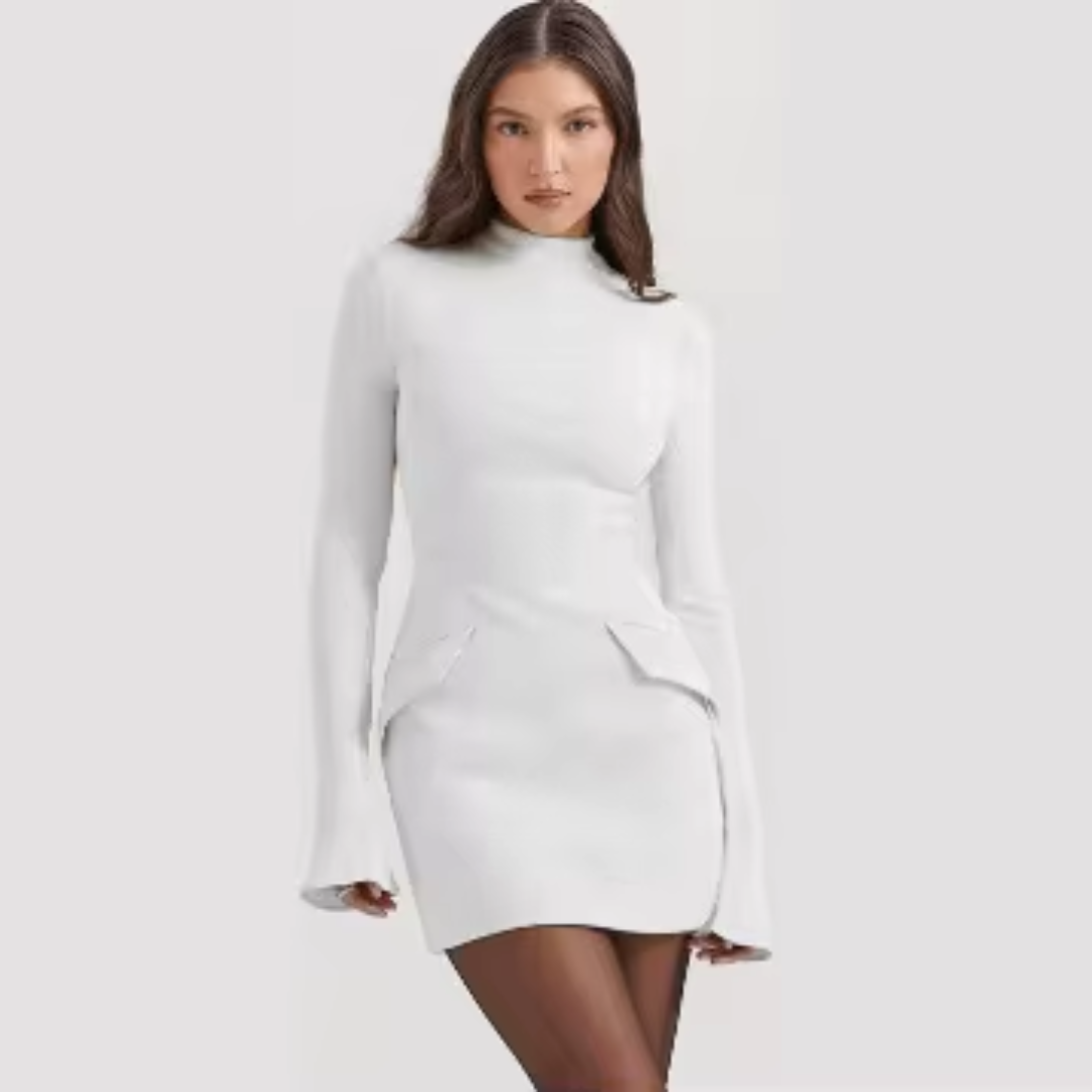 Robe Mini à Manches Longues – Coupe Structurée & Col Montant